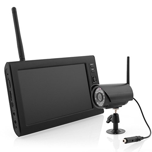 -Drahtloses Kamerasystem für Überwachung und Sicherheit. Mit Infrarot-LEDs für Nachtsicht. In diesem großen -7 Zoll Funk-Monitor, ist ein Empfänger eingebaut. Somit kann es das Videosignal von eins bis zu vier verschiedenen Überwachungskameras empfangen.Das Gerät lässt sich direkt über die Tasten bedienen.